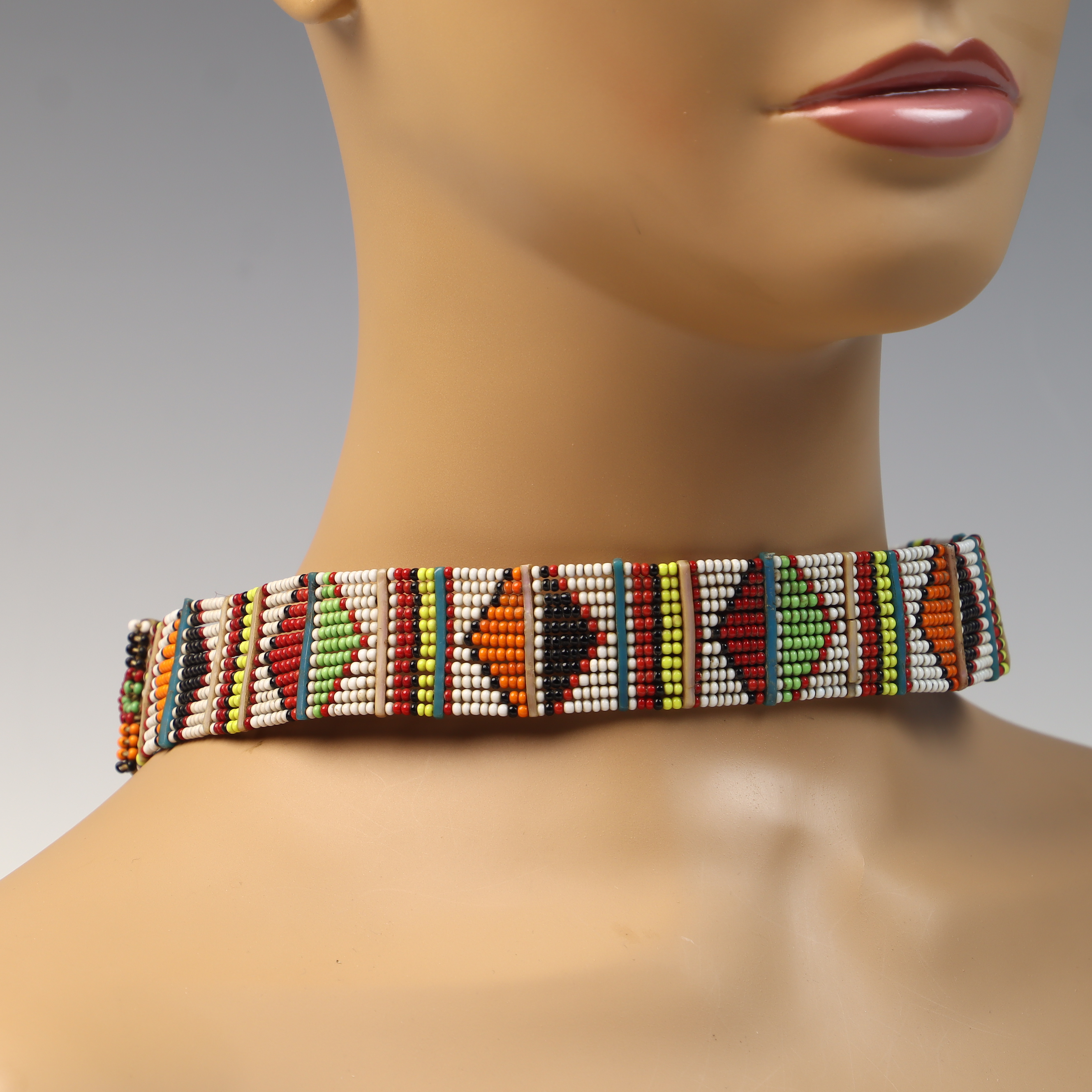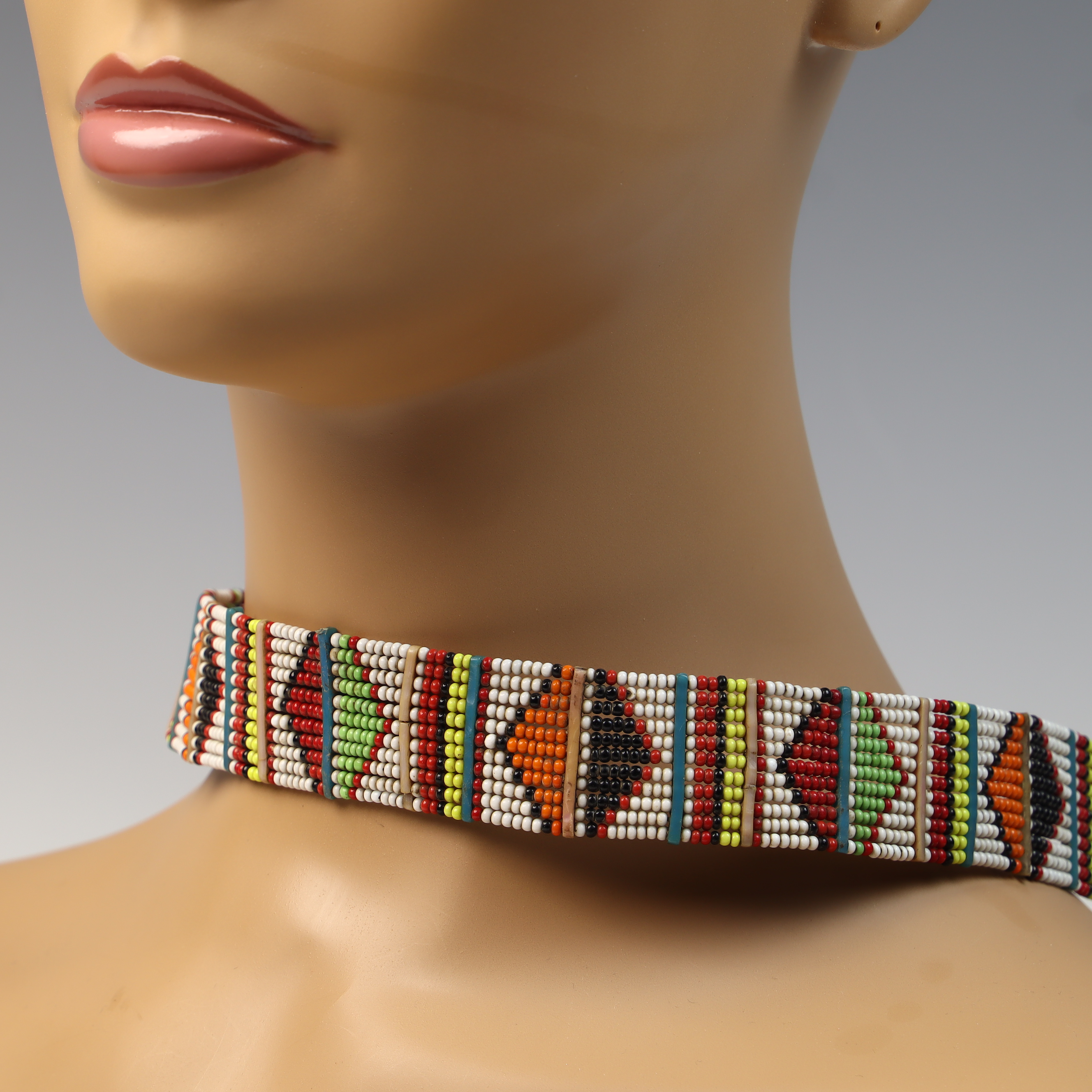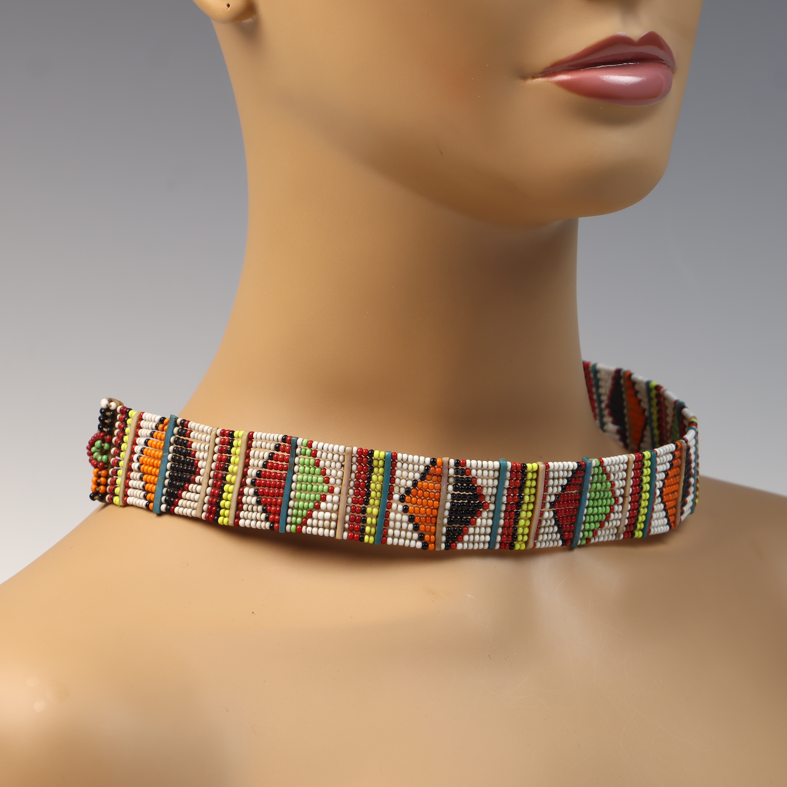 African Maasai Style Beaded Glass Seed Bead Engagement Choker Necklace