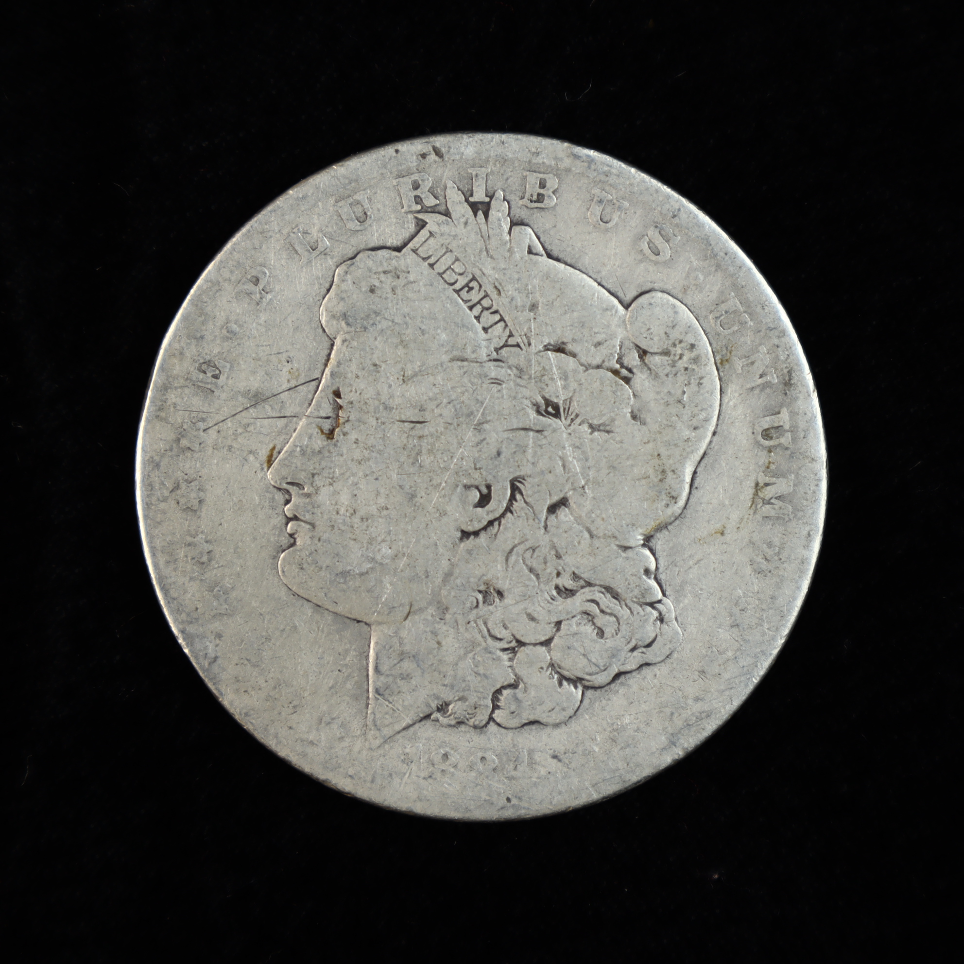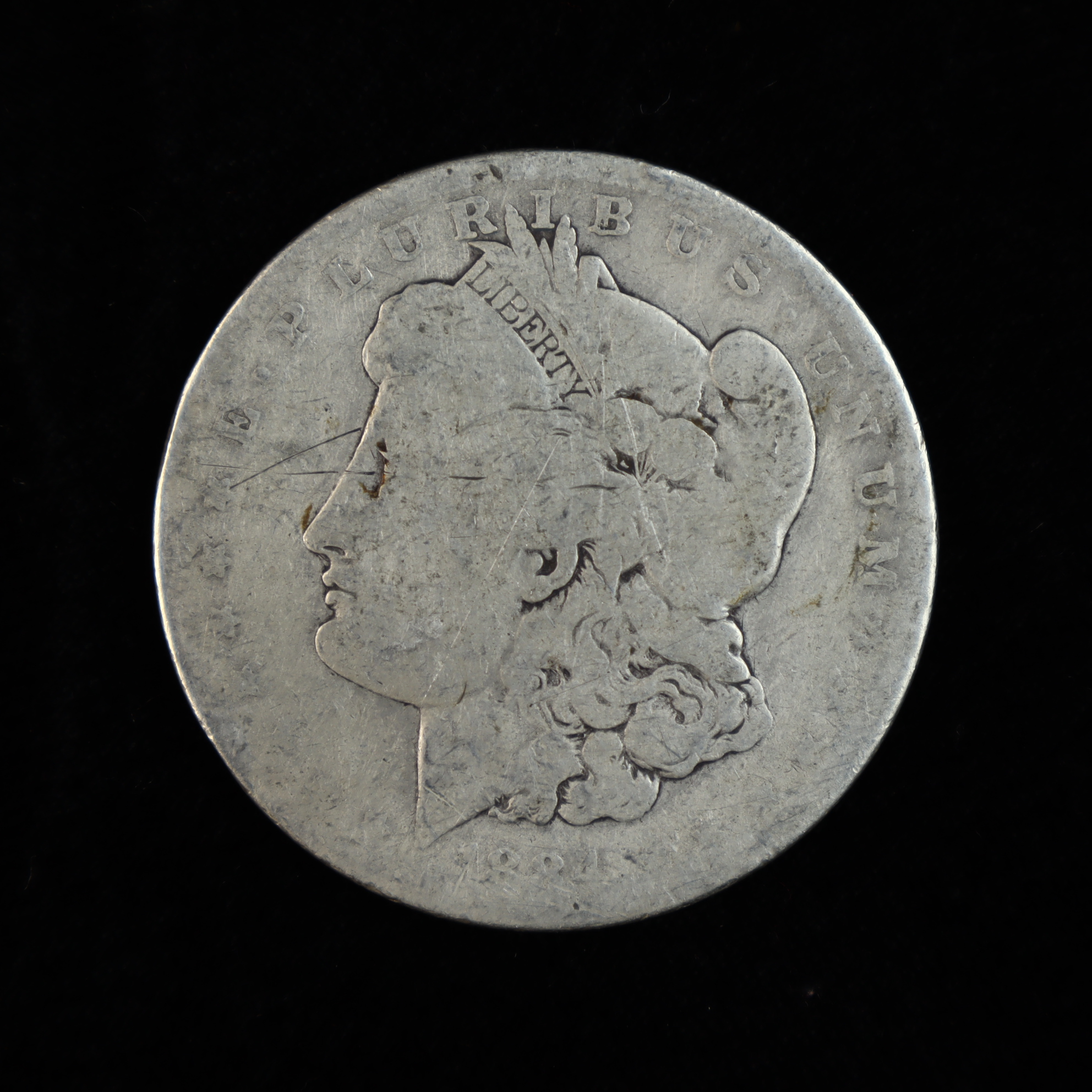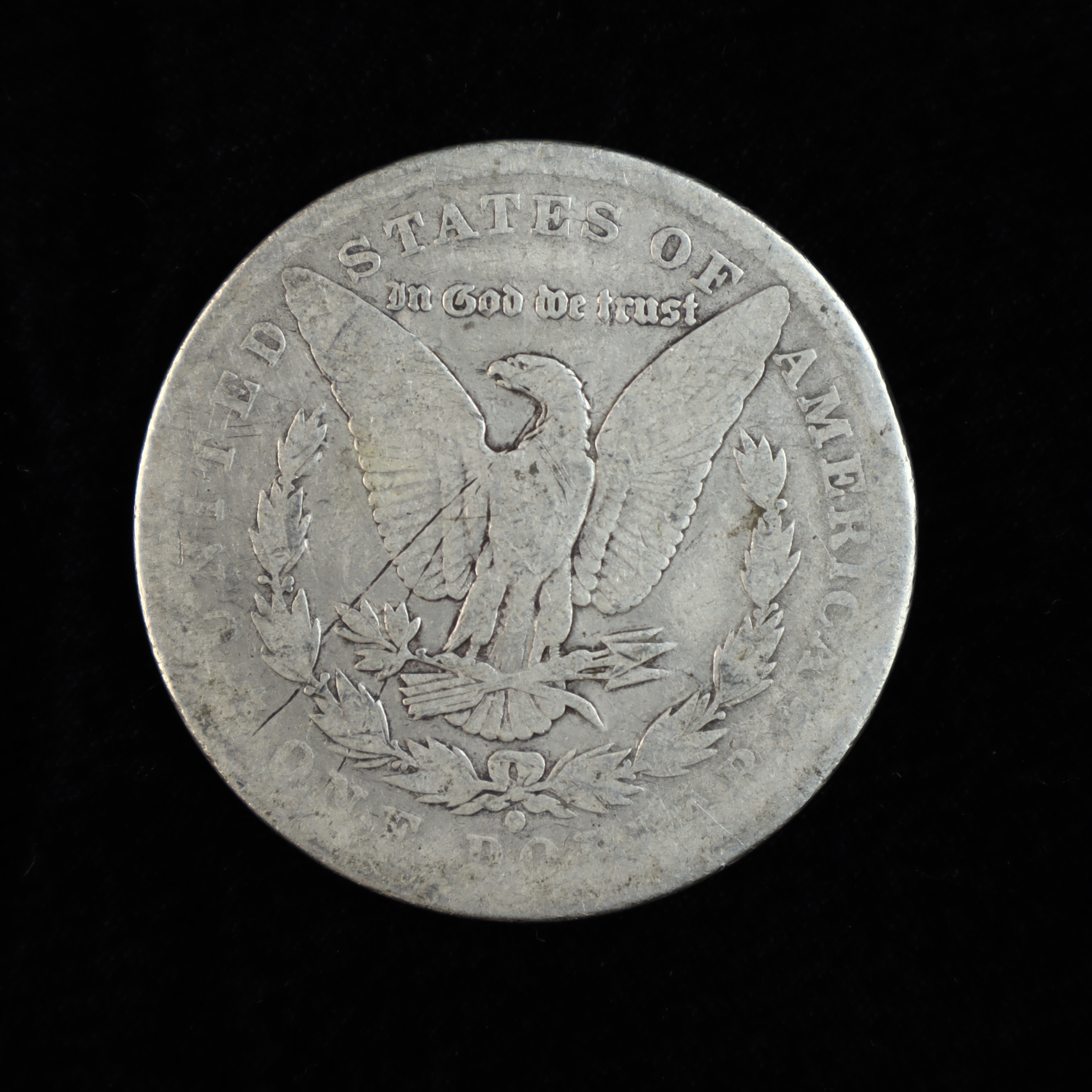 US Morgan Silver Dollar struck at the San Francisco Mint in 1894. The coin is composed of 90 percent silver and 10 percent copper with a 0.900 fineness. The obverse features the Liberty Head design and the reverse features the heraldic eagle design. A small S mint mark is positioned on the reverse below the wreath and above the denomination. The edge is reeded. The 1894-S is a lower mintage issue in the Morgan dollar series with 1,260,000 coins struck.