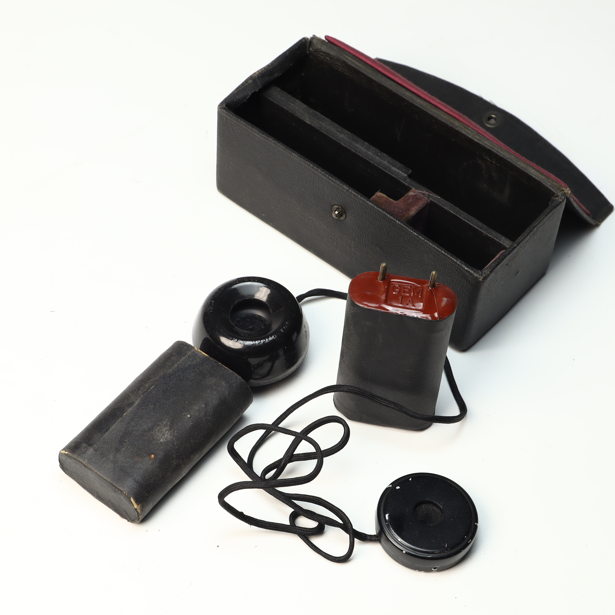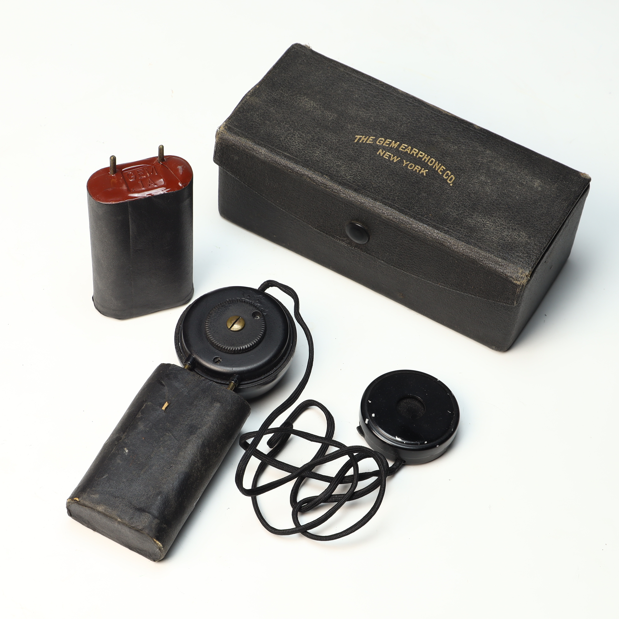 The Gem Earphone Co. Antique Portable Carbon Hearing Aid Set in Original Case